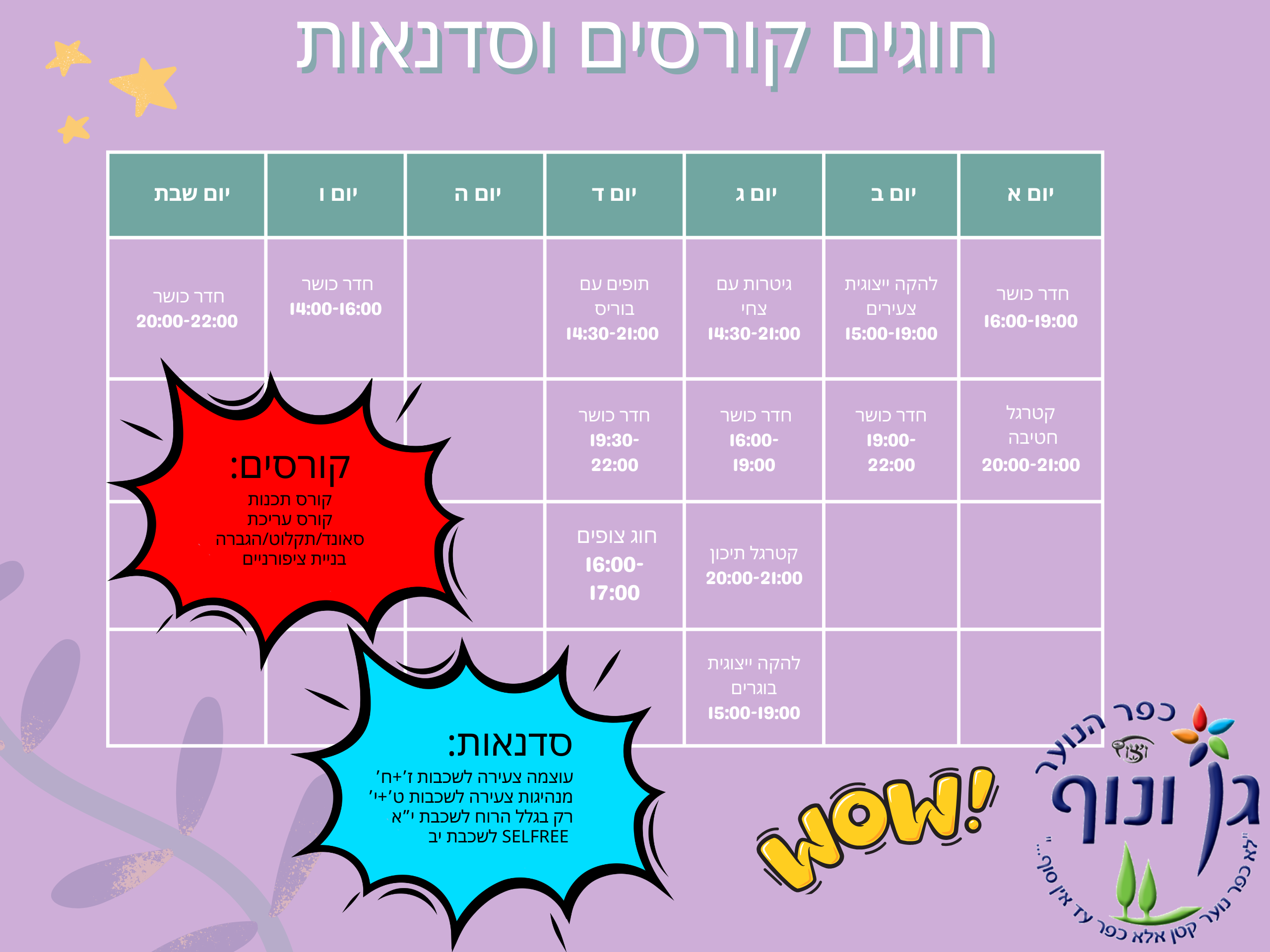 טבלת חוגים ופעילויות